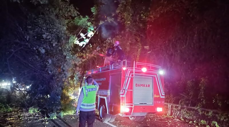 Quick Respon Polsek Babat Tangani Pohon Tumbang Akibat Hujan Deras