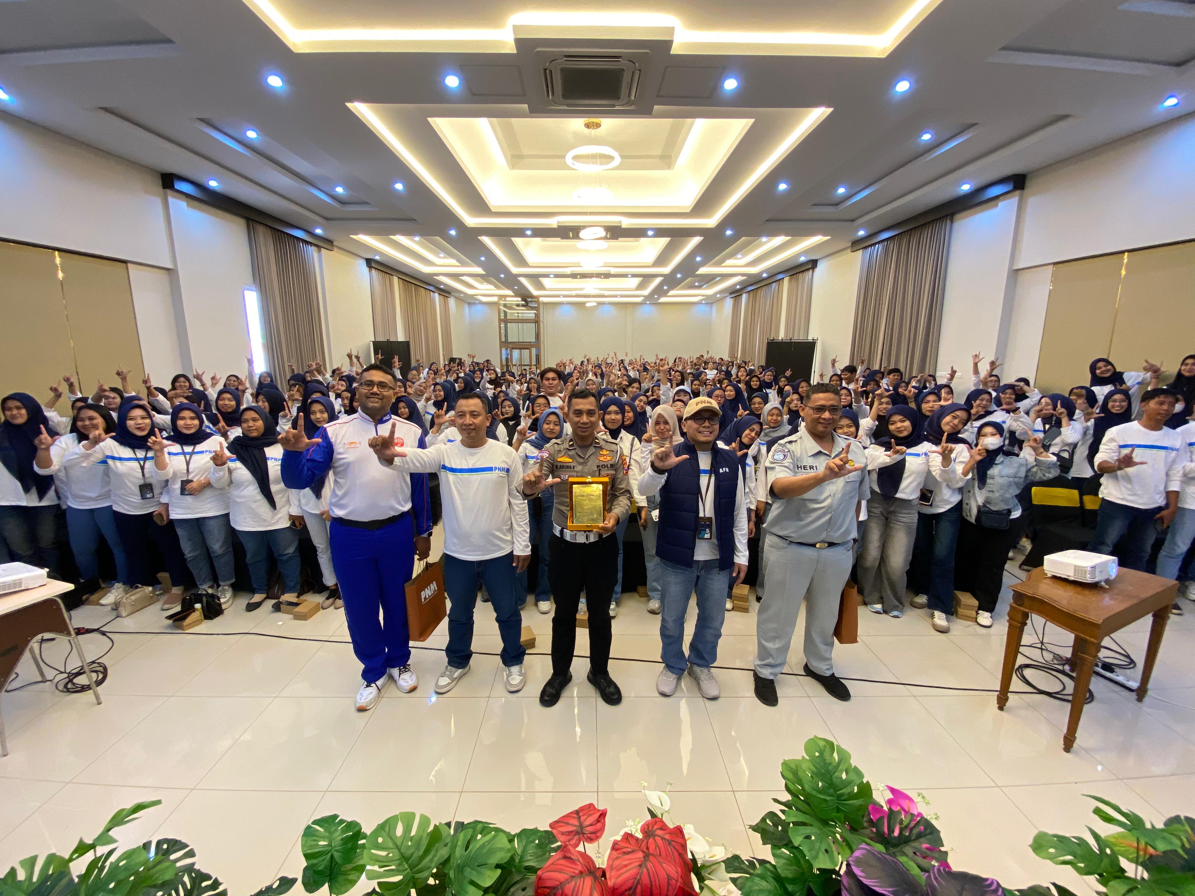” Melalui sosialisasi ini, kami berharap para peserta khususnya karyawan PNM Mekaar dapat menjadi pelopor keselamatan berlalu lintas, tidak hanya untuk diri sendiri tetapi juga memberikan contoh yang baik bagi masyarakat luas,” ujar AKP Nur Arifin.