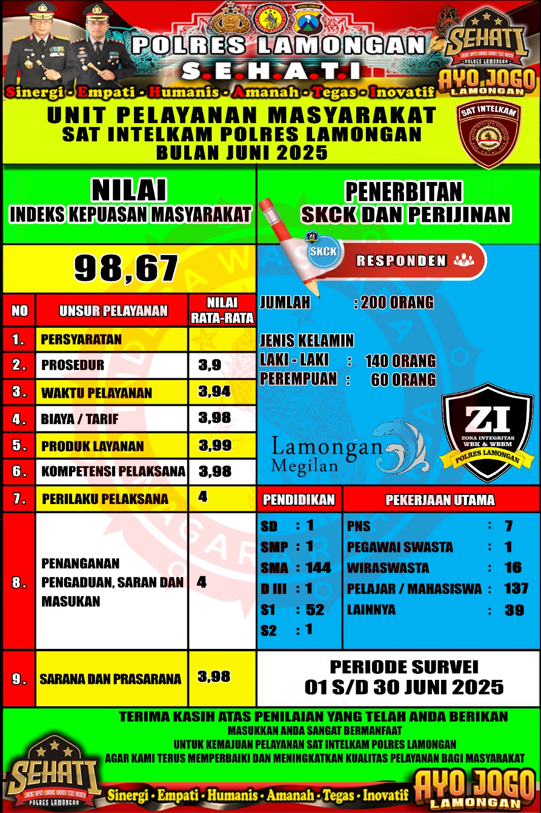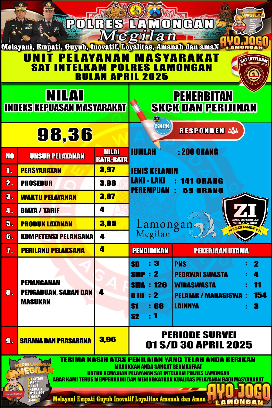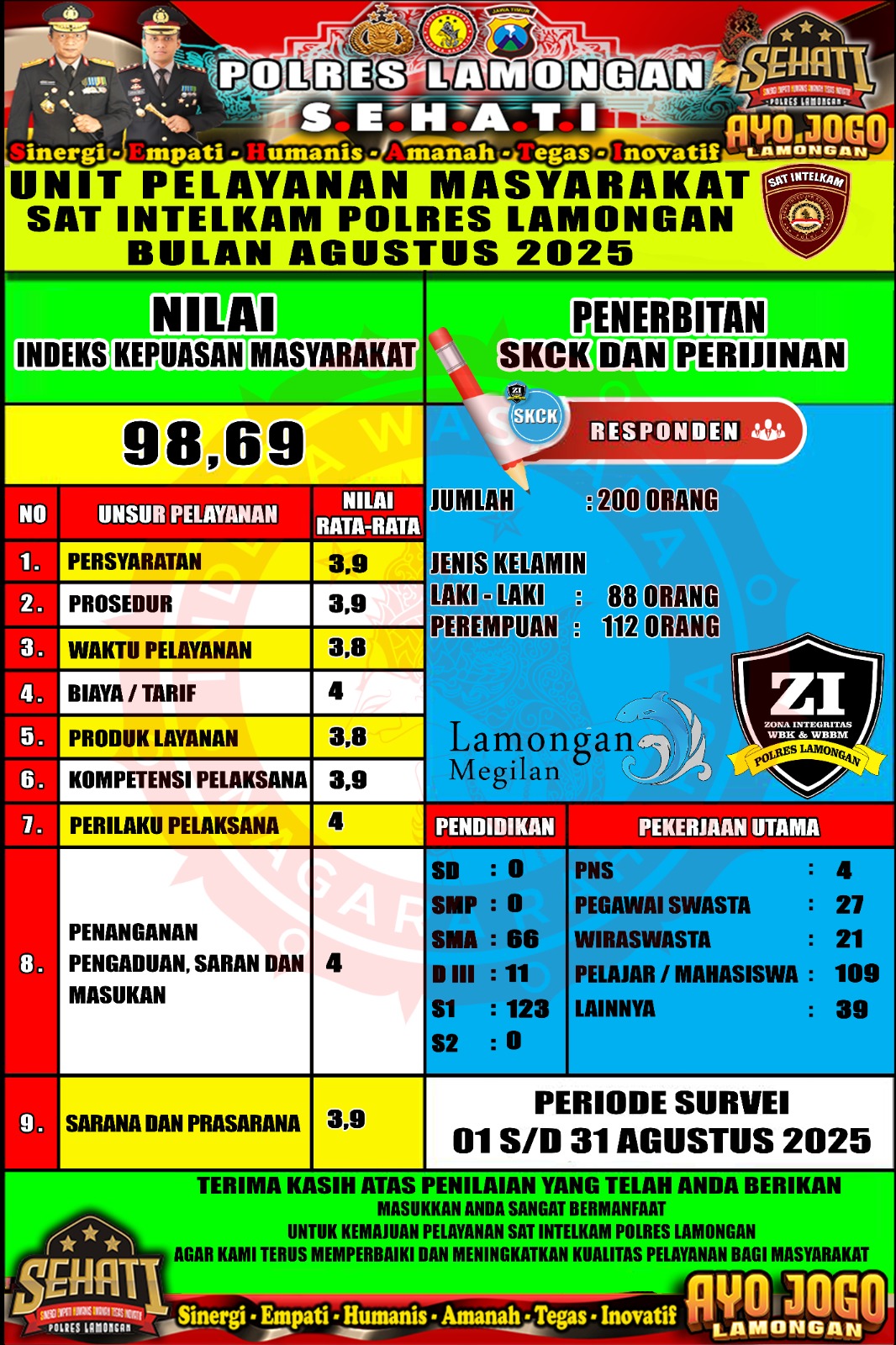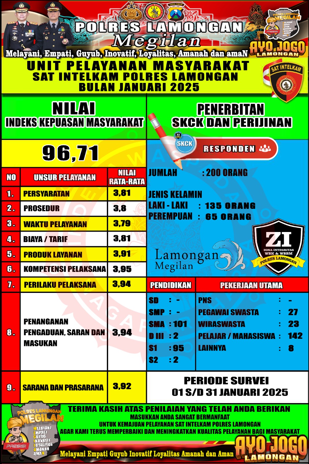 Hasil IKM layanan Masyarakat Sat Intelkam Polres Lamongan