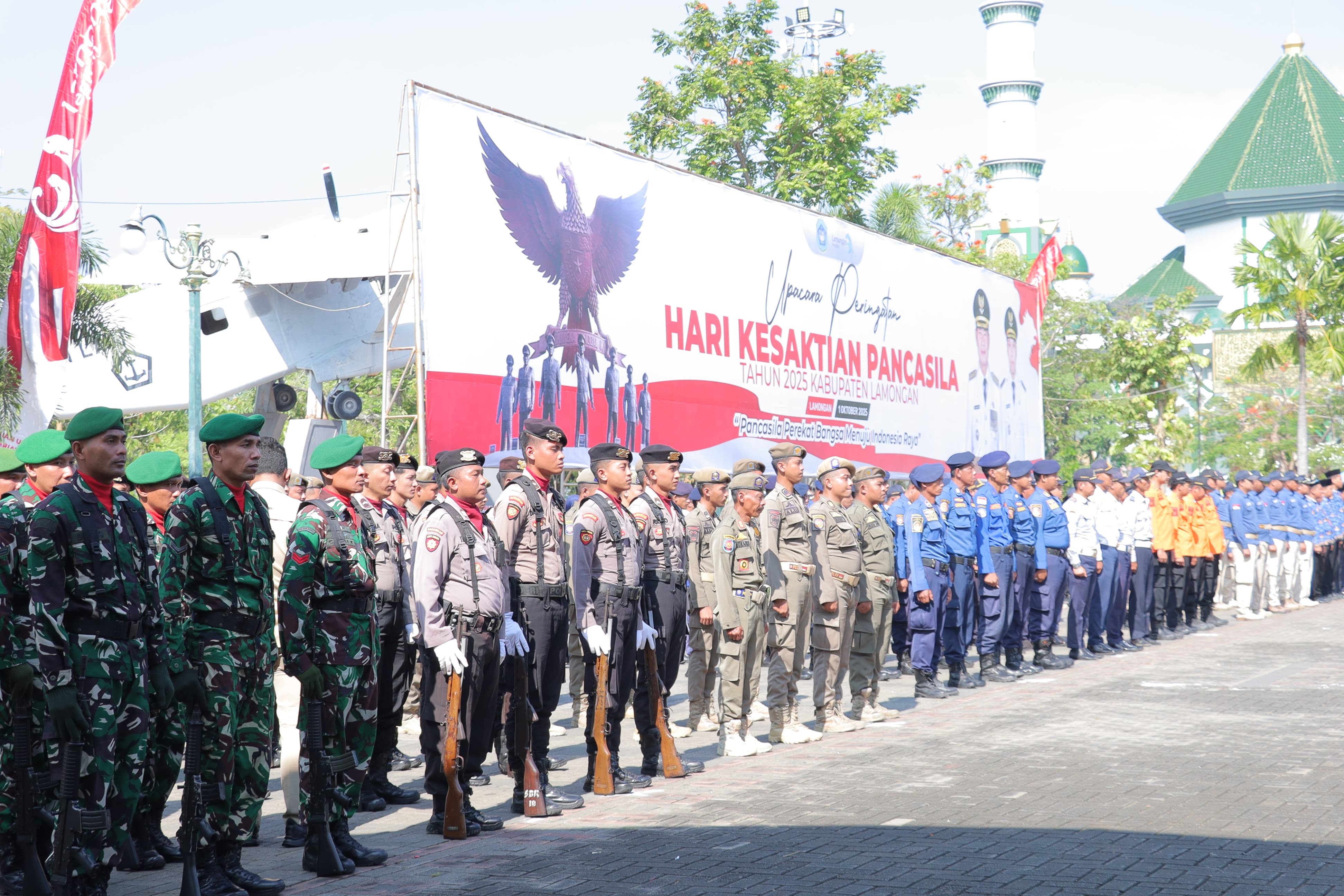 Kegiatan tersebut dipimpin langsung oleh Bupati Lamongan selaku Inspektur Upacara dan dihadiri Forkopimda Kabupaten Lamongan, pejabat TNI-Polri, ASN, serta tamu undangan lainnya.