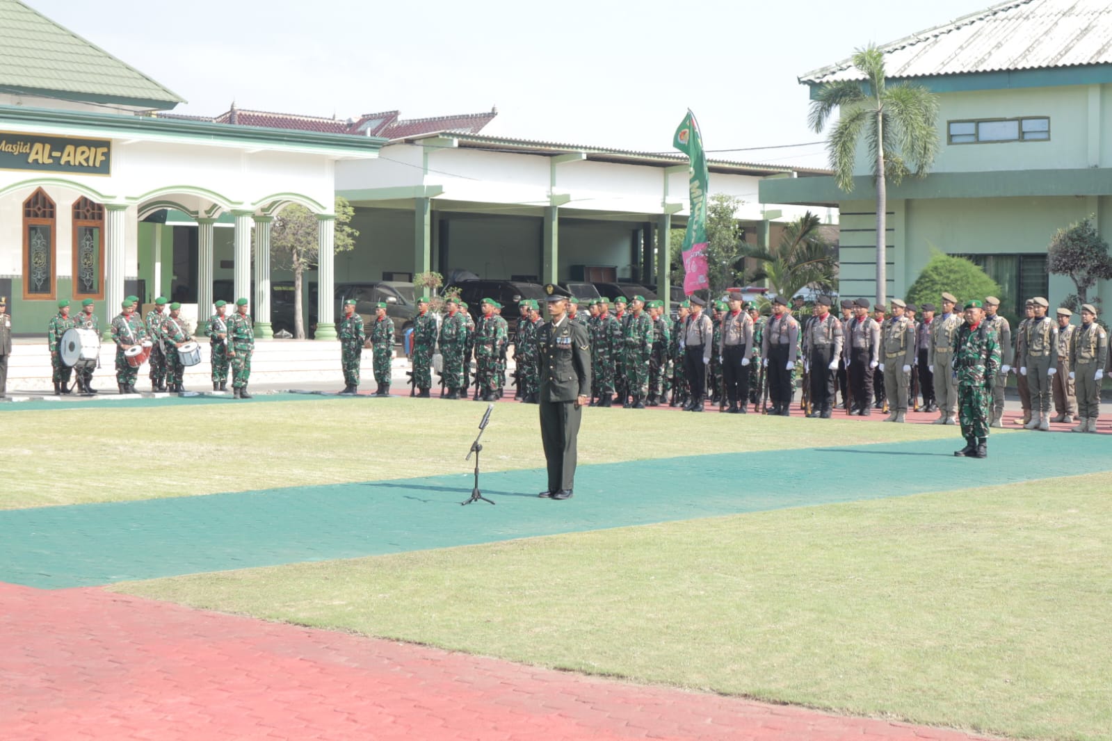 Upacara berlangsung khidmat dengan diawali penghormatan pasukan dan dilanjutkan pembacaan amanat Panglima TNI oleh Inspektur Upacara.