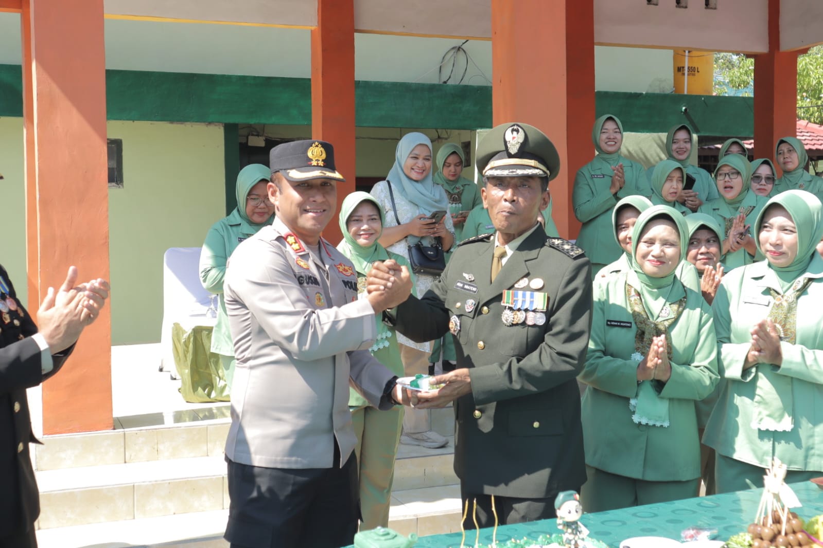 Setelah upacara, suasana haru dan penuh keakraban terjadi saat Kapolres Lamongan AKBP Agus Dwi Suryanto, S.I.K., M.H. bersama jajaran memberikan kejutan berupa tumpeng tasyakuran dalam rangka HUT TNI ke-80 di tiga lokasi berbeda, yaitu Makodim 0812/Lamongan, Subdenpom V/2-3 Lamongan, dan Subgartab 0812/Lamongan.