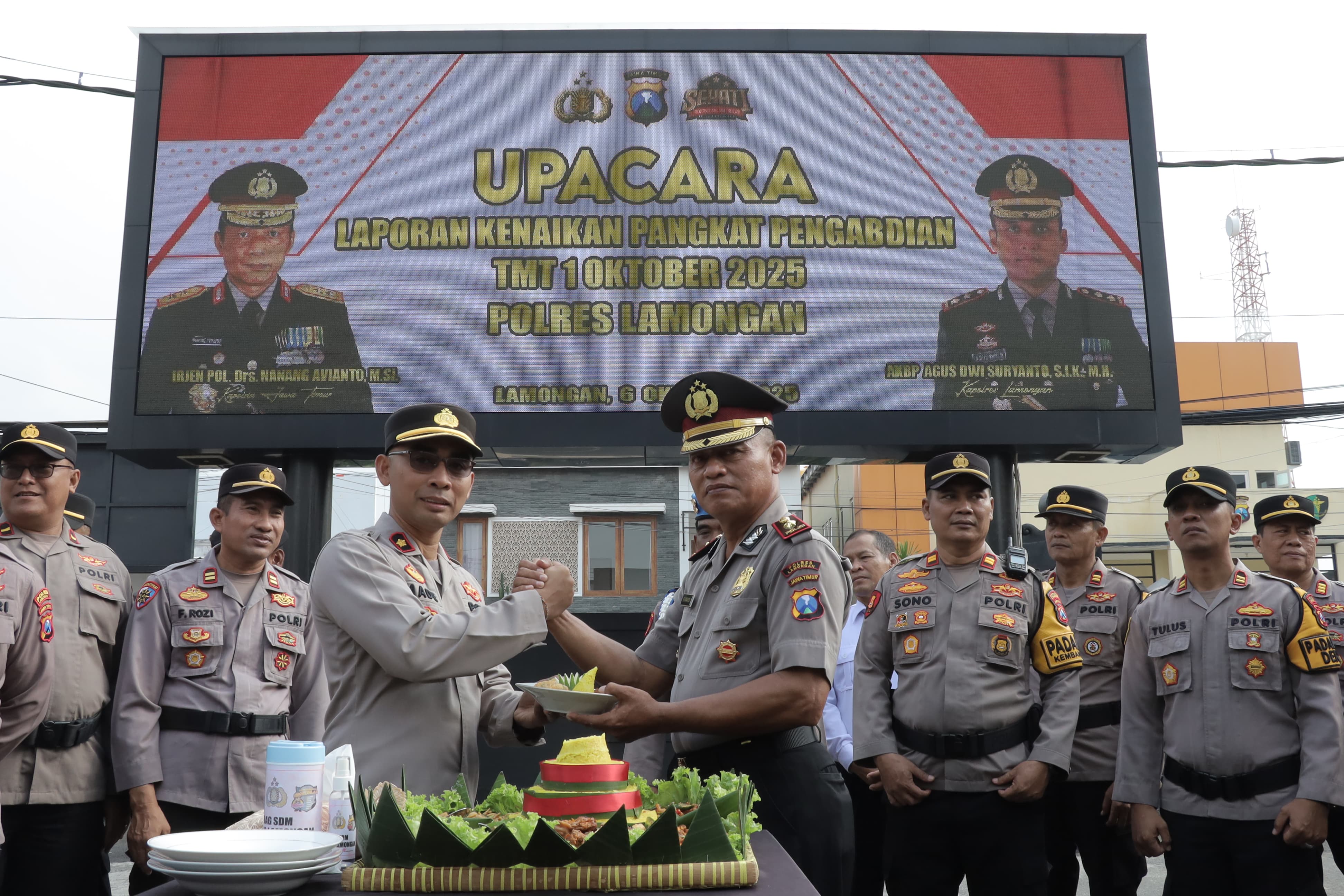 Lamongan, 06/10/2025 – Polres Lamongan menggelar upacara kenaikan pangkat pengabdian bagi salah satu perwira terbaiknya, AKP Suwandi Kapolsek Glagah yang resmi naik pangkat menjadi KOMPOL terhitung mulai tanggal 1 Oktober 2025.