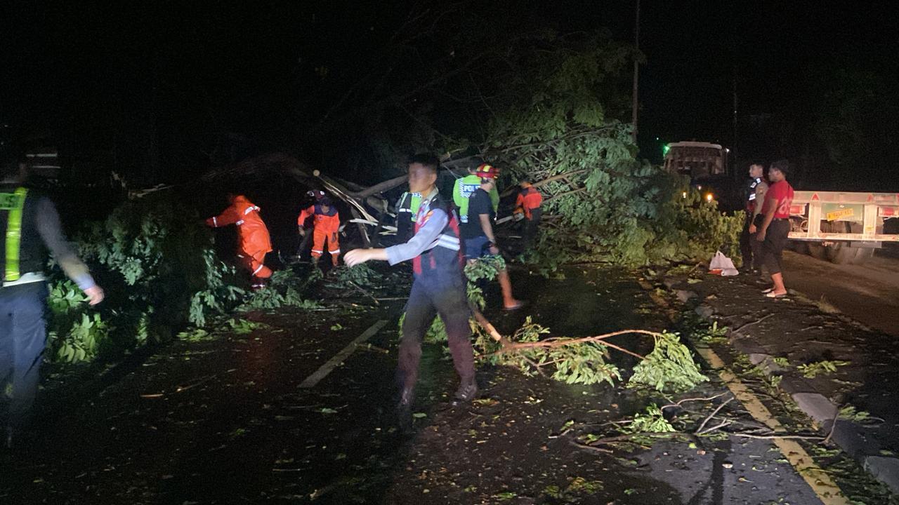 “Polsek jajaran langsung bergerak cepat melakukan evakuasi pohon tumbang dan membantu warga membersihkan material agar arus lalu lintas kembali lancar,” ujarnya.