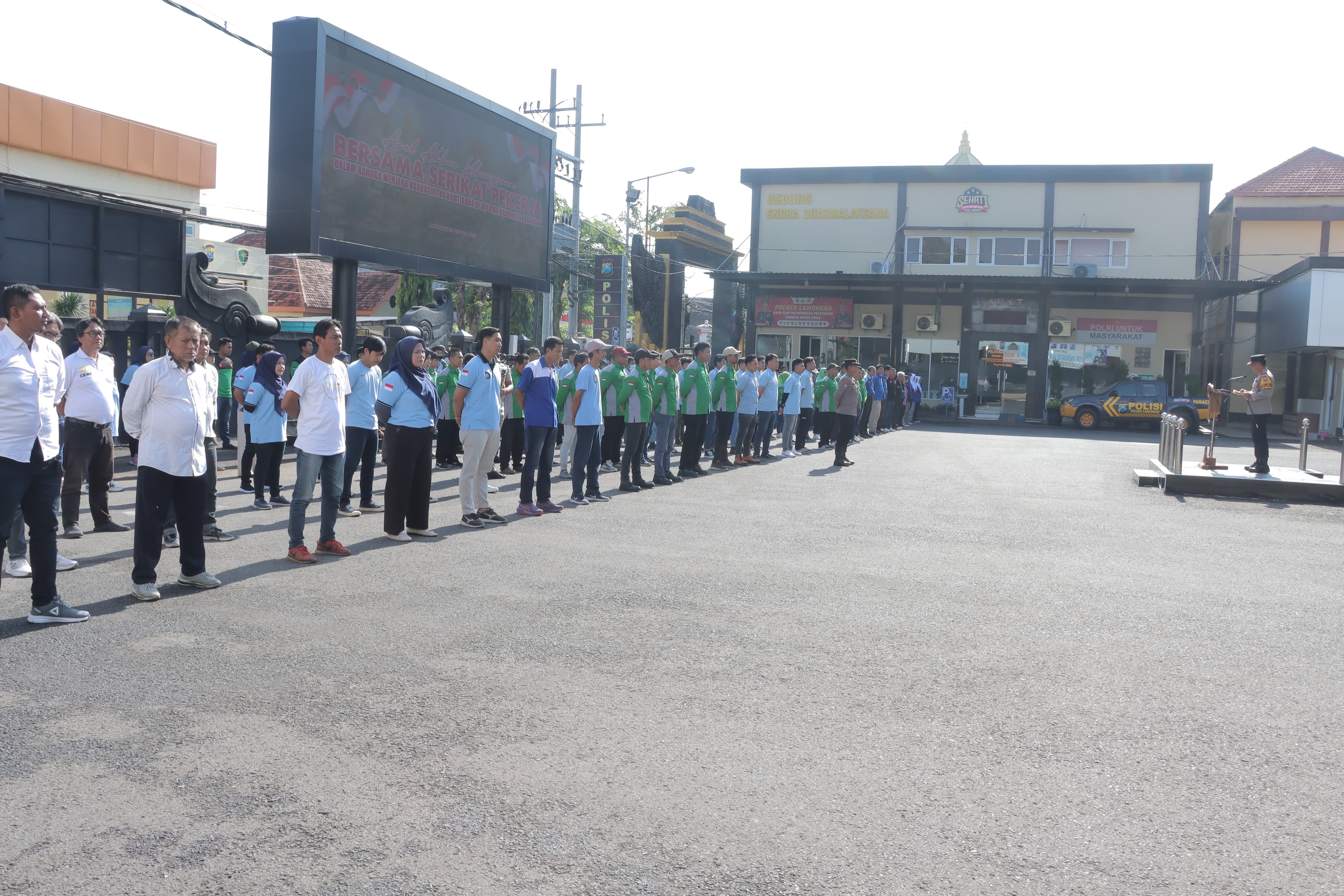 Lamongan, 23/10/2025 – Dalam rangka mempererat sinergi antara aparat kepolisian dan elemen pekerja, Polres Lamongan menggelar Apel Akbar Kebangsaan bersama Serikat Pekerja dengan tema “Menjaga Kondusifitas Kamtibmas di Wilayah Kabupaten Lamongan.”
