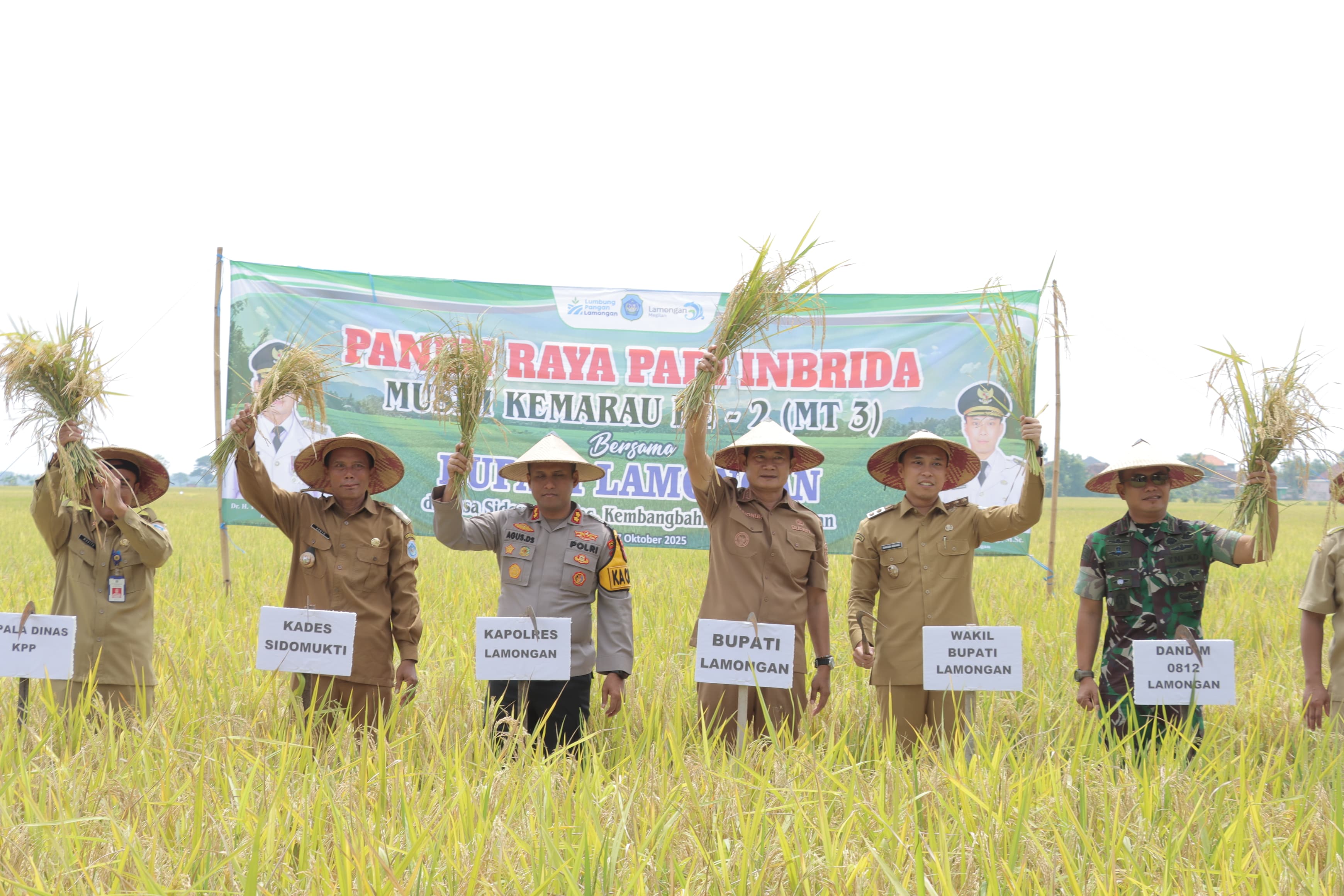 Kegiatan Panen Raya Padi Inbrida di Desa Sidomukti ini menjadi bukti nyata sinergitas antara Pemerintah Daerah, TNI–Polri, dan masyarakat dalam mendukung ketahanan pangan nasional serta meningkatkan kesejahteraan petani di Kabupaten Lamongan.