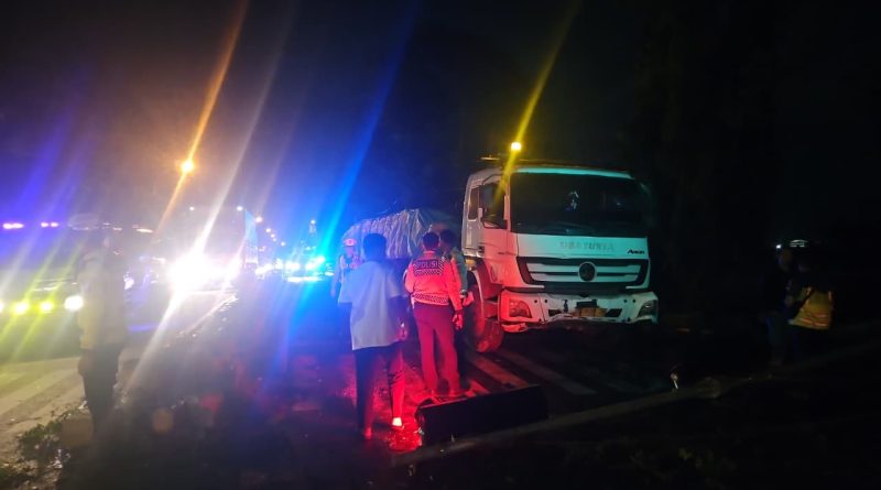 Respon Cepat Polres Lamongan Evakuasi Truk Trailer Tabrak Median dan Serempet Mobil Penumpang di JLU Barat