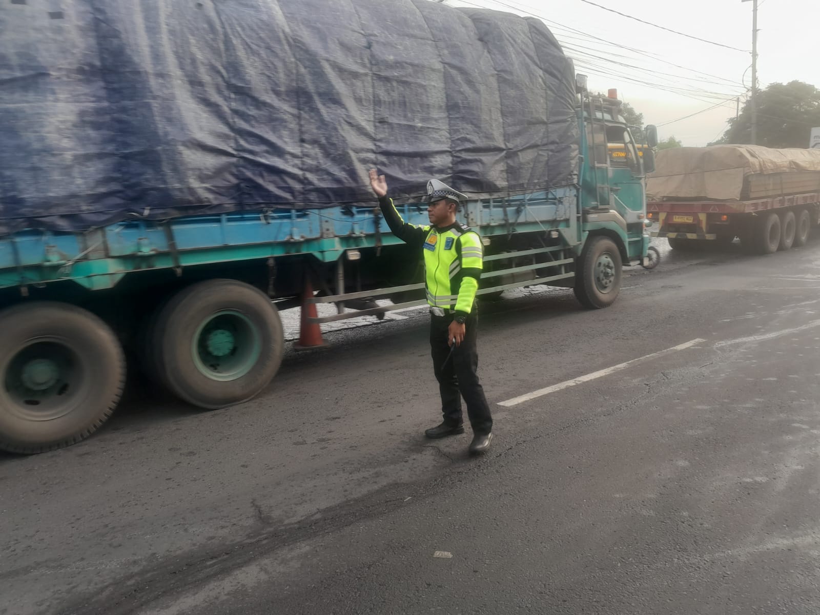 Truk Terguling, Sat Lantas Polres Lamongan sigap atur dan Cegah Kemacetan