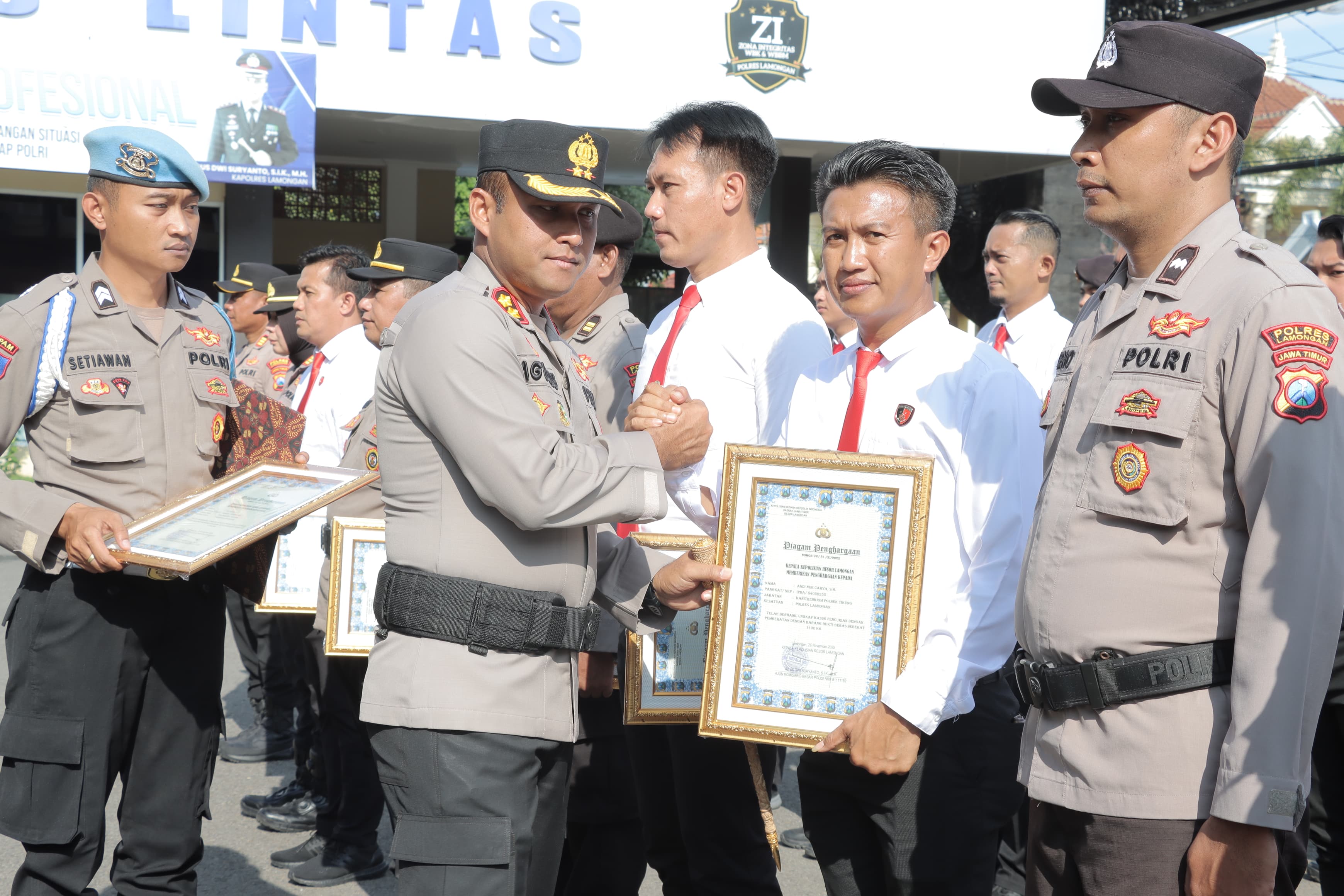 Polres Lamongan Gelar Upacara Pemberian Penghargaan bagi Personel Berprestasi dan Masyarakat yang Bantu Tugas Polri
