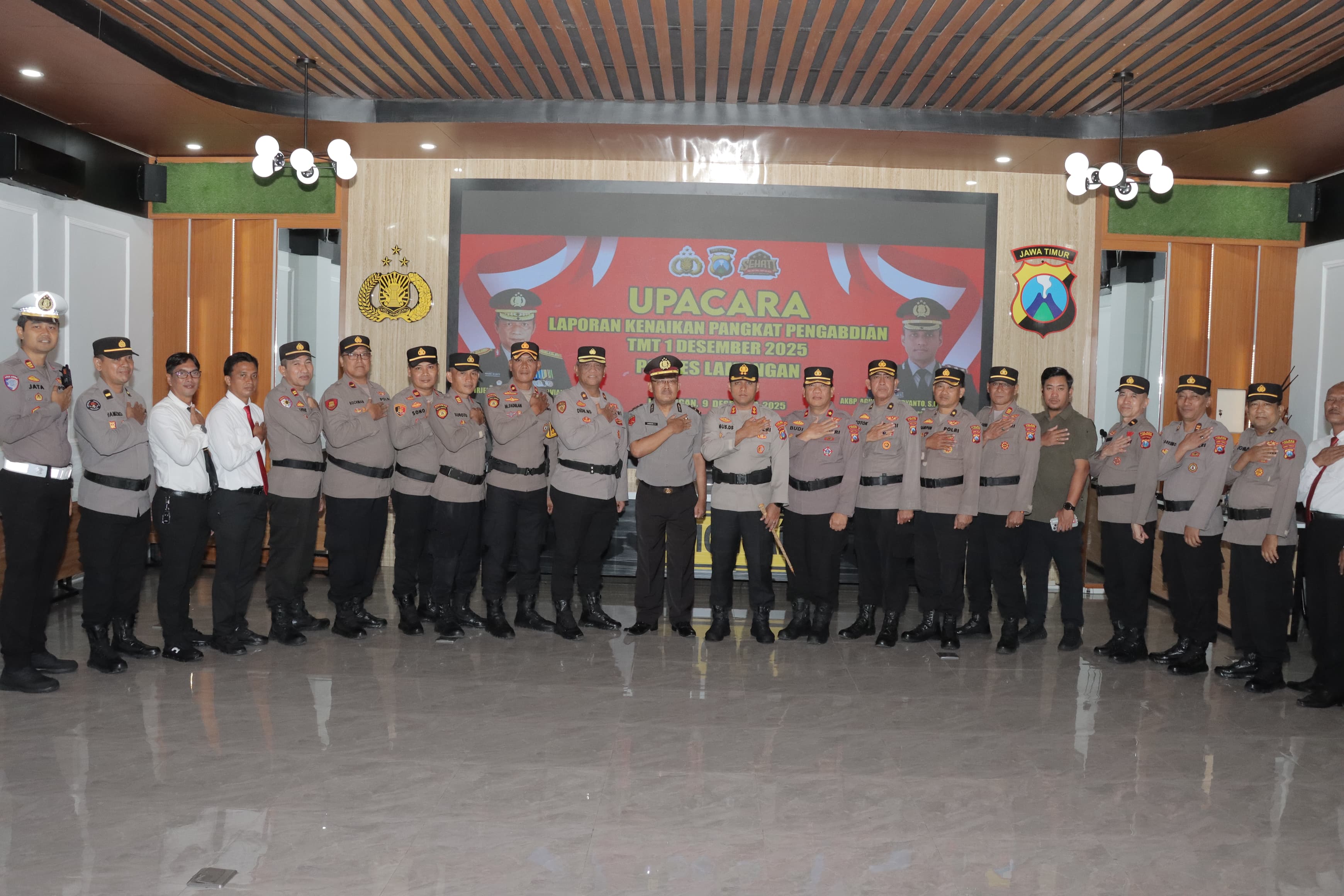 Lamongan, 09/12/2025 – Kapolres Lamongan AKBP Agus Dwi Suryanto, S.I.K., M.H. memimpin langsung Upacara Kenaikan Pangkat Pengabdian untuk IPDA Bambang Sukirno yang digelar di ruang RTD Polres Lamongan.