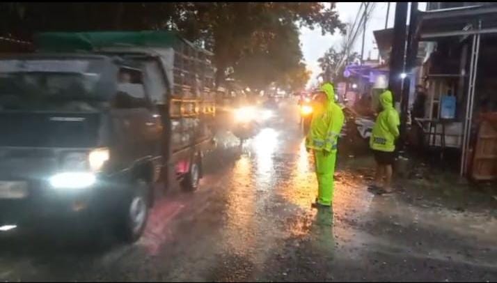 Selain itu, anggota Polsek Sugio juga mengatur arus lalu lintas agar tetap berjalan lancar dan aman mengingat lokasi longsor berada di jalur umum.