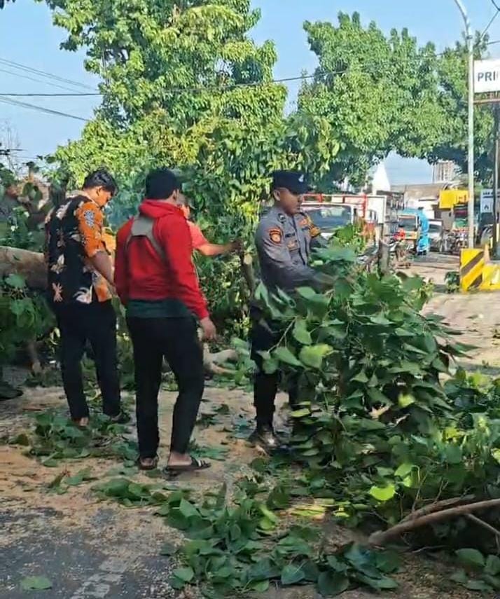 Polsek Paciran Evakuasi Pohon Tumbang di Jalan Raya Deandels, Arus Lalu Lintas Kembali Lancar