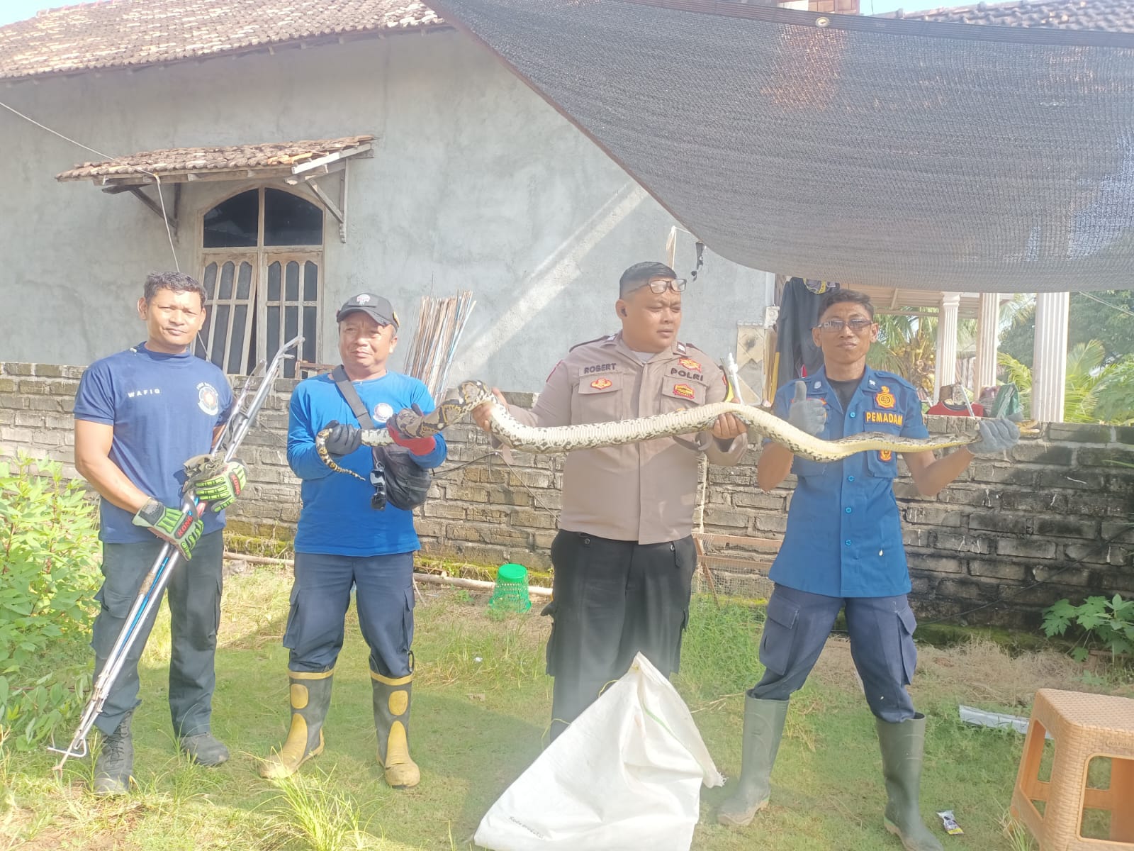 Respon Cepat Call Center 110, Polsek Brondong Evakuasi Ular Sanca 2 Meter Masuk Rumah Warga Sidomukti
