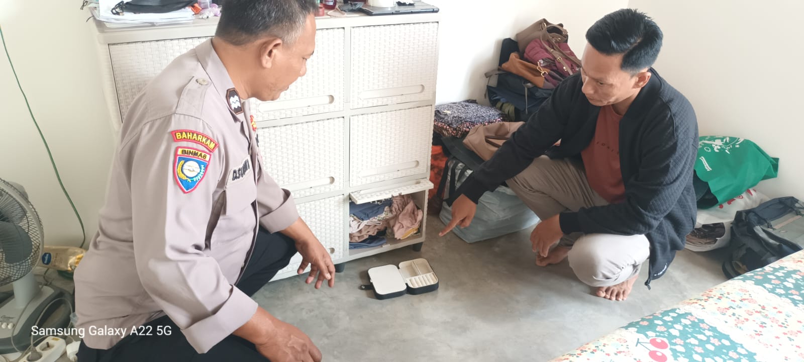 Petugas turut mengamankan sejumlah barang bukti berupa Surat perhiasan emas, Kotak perhiasan emas, Uang tunai sebesar Rp 22.000.000,- (dua puluh dua juta rupiah).