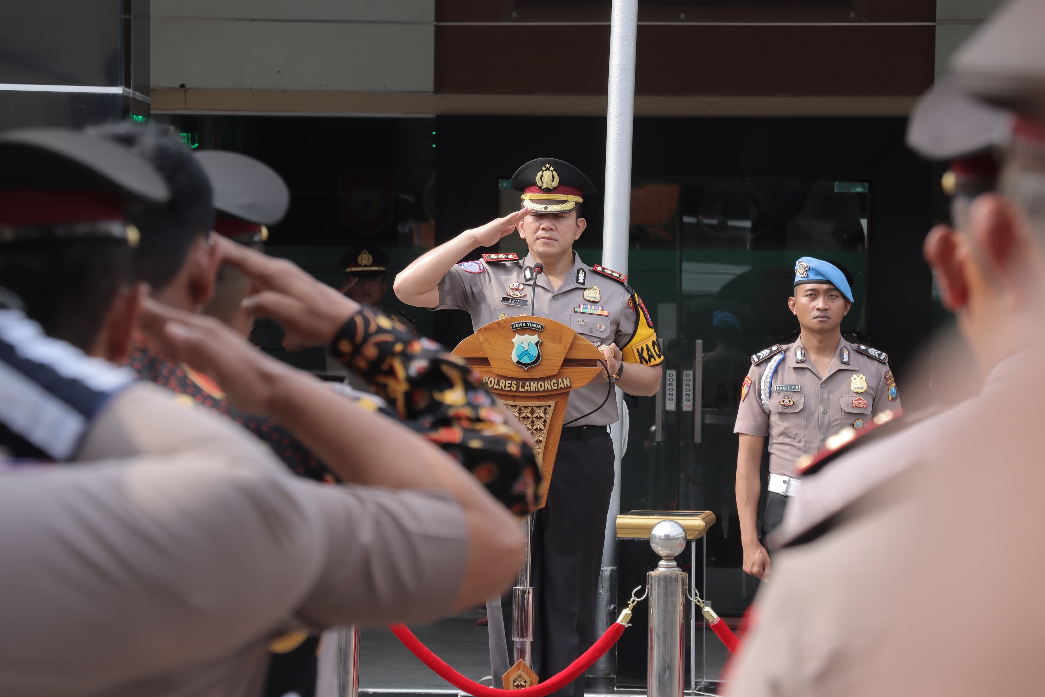 Kegiatan yang berlangsung khidmat tersebut digelar di Lapangan Apel Polres Lamongan dan menjadi momen penuh kebanggaan bagi seluruh peserta upacara.