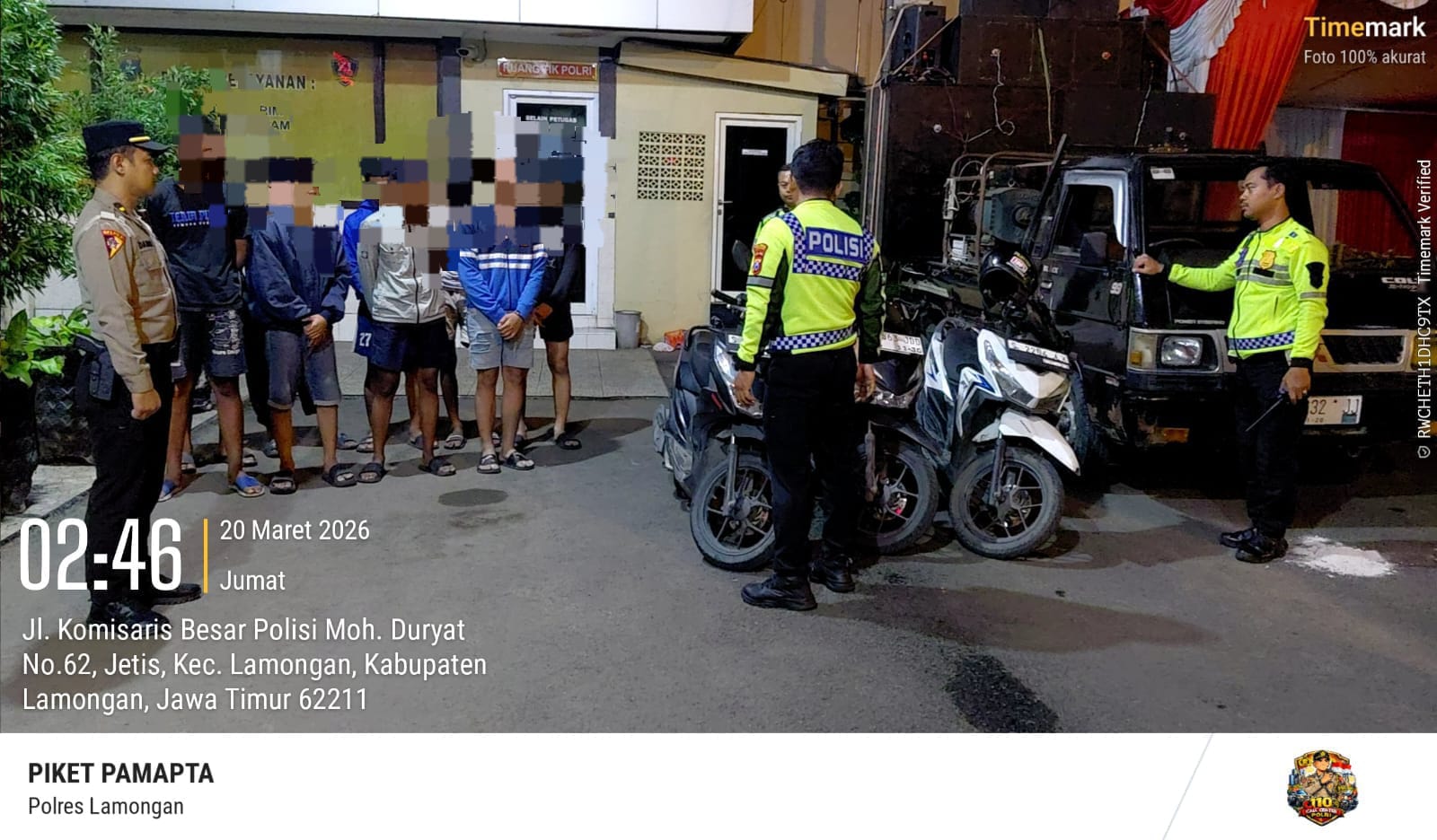 Menindaklanjuti laporan tersebut, Pamapta Polres Lamongan IPDA Daniar V memimpin personel gabungan dari fungsi Lalu Lintas, Reskrim, dan Samapta Polres Lamongan segera melakukan penindakan di lokasi.