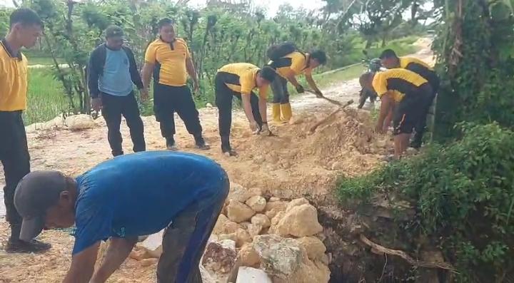 Dalam pelaksanaannya, petugas bersama masyarakat dan instansi terkait bergotong royong melakukan perbaikan darurat guna mempercepat pemulihan akses.
