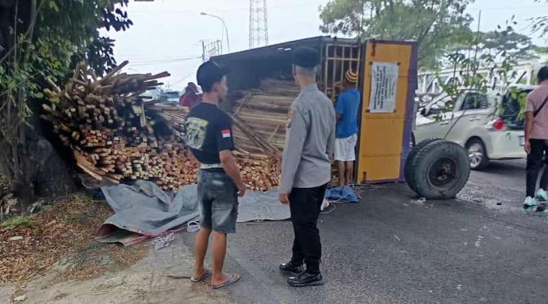 Kendaraan tersebut dikemudikan oleh R (30), warga Kecamatan Randublatung, Kabupaten Blora, Jawa Tengah, yang saat itu tengah mengangkut muatan kayu usuk dan reng.